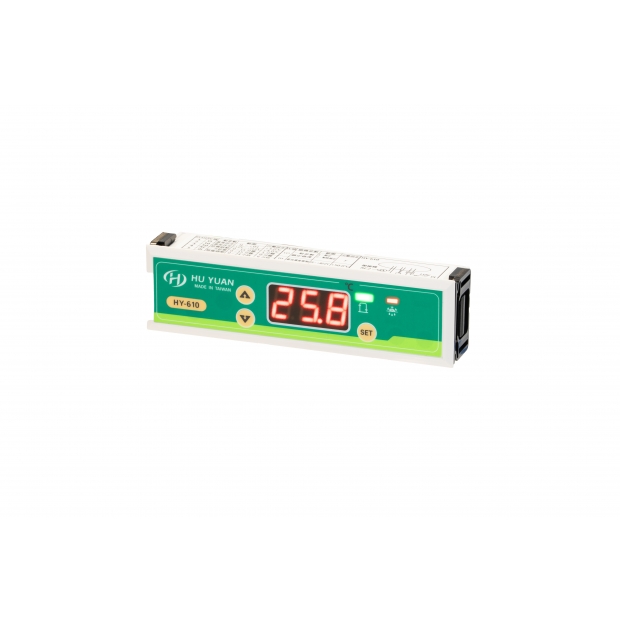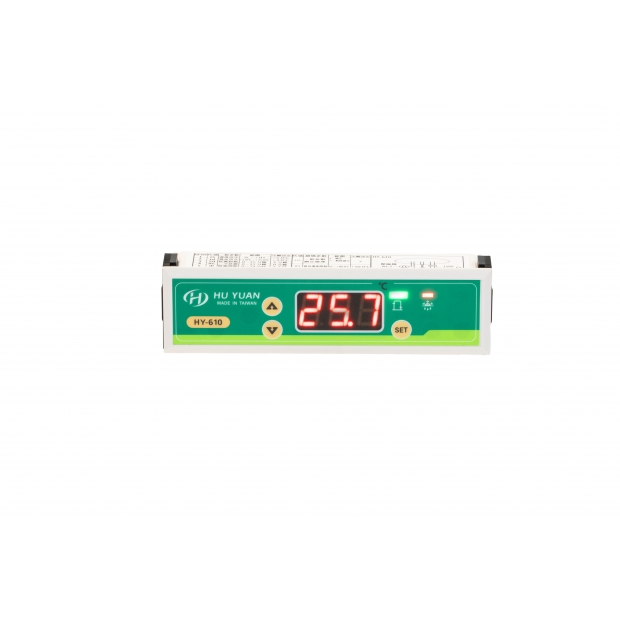 HY-610-Y 微電腦溫度控制器-冷熱控/二用模式 |冷藏冷凍專用|溫度精準可調 規格表 輸入電壓:12V / AC / DC / 50 ~ 60Hz 偵測溫度範圍:-50℃ ~ +80℃ 工作環境溫度:-15℃ ~ +70℃ 準確度:±1℃ 解析度:0.1℃ 安裝尺寸:137 * 32 * 28 ㎜³ 顯示器:七段顯示器 安裝方式:崁入式 最大輸出:壓縮機 30A / 240V (純電阻性負載) *若使用於負載電流較大時,需加裝電磁接觸器。 說明書下載